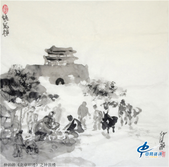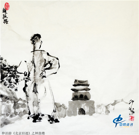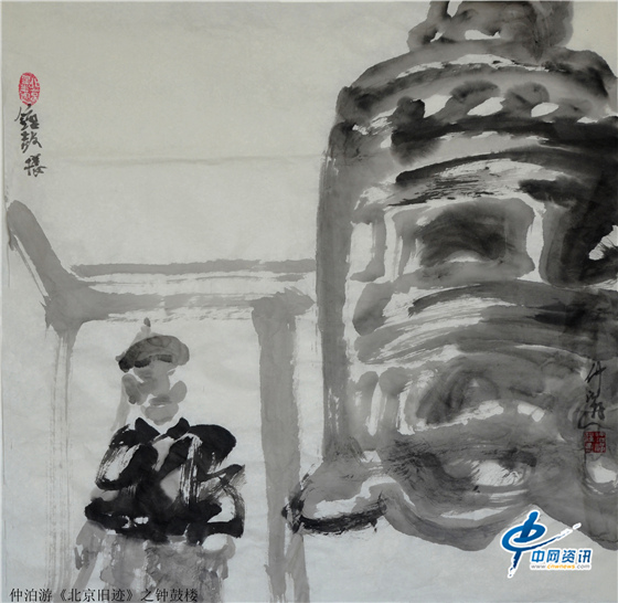 【中网资讯书画】仲泊游以水墨语言追忆北京旧迹,北京是一座有故事的都城,历史悠久,文化厚重,画家以点滴往事写意晚清民初的过往人物及老北京风景片段。去唤起人们对北京悠悠岁月的回味。