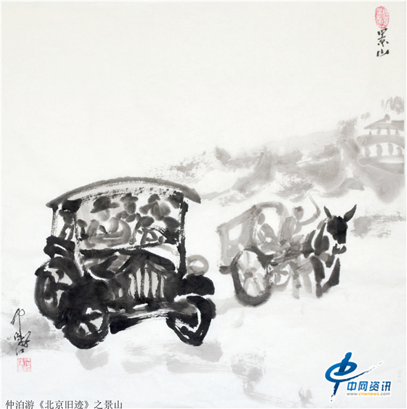 【中网资讯书画】仲泊游以水墨语言追忆北京旧迹,北京是一座有故事的都城,历史悠久,文化厚重,画家以点滴往事写意晚清民初的过往人物及老北京风景片段。去唤起人们对北京悠悠岁月的回味。