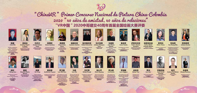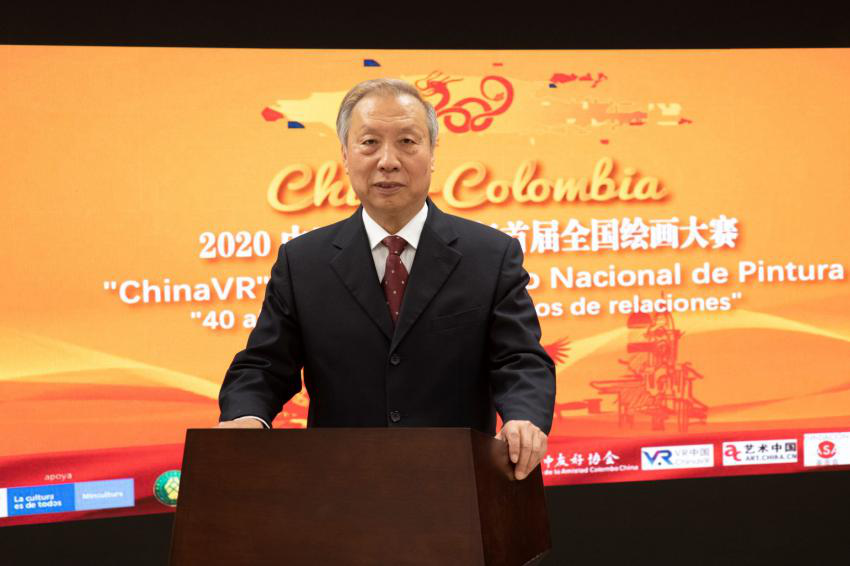 【中网资讯书画】11月26日,由中国驻哥伦比亚大使馆、哥伦比亚文化部、“VR中国”共同主办,艺术中国、中国书画院、罗振玉甲骨文书画艺术中心、哥中友协、汉语桥俱乐部波哥大站等共同协办的2020年“VR中国”中哥建交40周年首届全国绘画大赛线上颁奖典礼成功举办。中国驻哥伦比亚大使蓝虎、文化参赞朱晓燕,哥文化部长巴斯克斯,中国教育部科技委主任、前副部长赵沁平院士,哥前旅游部副部长、前驻华大使鲁埃塔等30名中哥著名文化艺术大伽评委及2000多名观众分别通过“VR中国”、Zoom,Facebook,Instagram、麦德林孔院等多媒体平台,出席线上颁奖典礼。早在11月1日起,观众即通过中哥虚拟绘画展厅及多媒体系统纷纷热评、点赞,点击量已达80多万,忠粉13万。仅三位最佳人气奖选手即囊括12万张选票,为今年中哥建交40周年系列庆典活动又增添了一道亮丽的风景线。