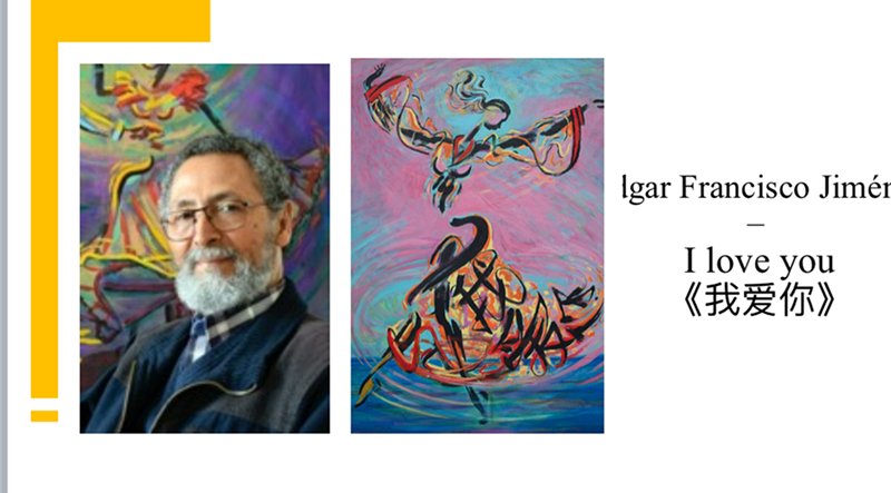 北京航空航天大学副教授、新媒体艺术与设计学院副院长胡勇,对成人专业组二等奖海梅内斯的《我爱你》(EdgarFranciscoJiménez-Iloveyou)评论到:作为一名外国人不仅识汉,还能用汉字组合为绘画作品实属难得。整幅画作动感十足,色彩艳丽时尚,充满爱的箴言。古老的汉字与热情的拉美舞蹈融为一体,华美壮丽、浪漫温馨,充满无限爱意。