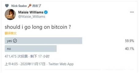 (2020年11月,《权力的游戏》女演员麦茜·威廉姆斯问网友要不要购买比特币)