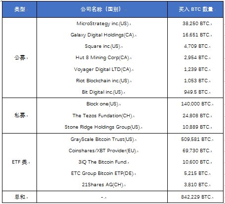 表1. 购买比特币的部分机构名单