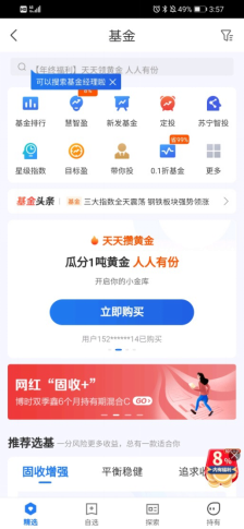 据悉,改版后的苏宁基金主要模块由上至下分别为:财富直通车(拳头产品)、推荐基金、专业选基及精选推荐。财富直通车汇集了苏宁基金的拳头产品,慧智盈、重点新发、一周热销以及老基金皆虚位以待。推荐基金着重客户风险分层的理念,固收增强、平衡稳健、追求收益三大投资偏好直观展示,一分风险一分收益,总有一款适合你。专业选基面向成熟投资人所准备,热门主题紧扣市场热点,推荐行业贴合商业周期,明星经理直指风格轮动,寄望小小的一步能让投资人获得梦寐以求的性价比。精选推荐主打差异化主题,包括金牛精选、五星推荐、量化选基、分析师推荐以及海外精选等等。