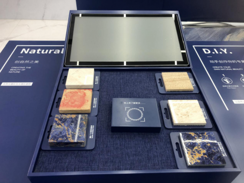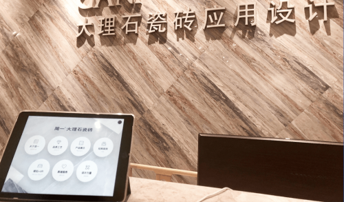 把瓷砖样品放在感应区域,系统还会有相应的防滑、耐磨、平整度等详细视频讲解,让用户再一次加深对于产品和品牌印象的深刻认知。