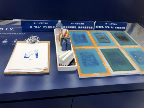 “一砖一故事”,让用户看到石材从毛料到成品的不同工艺过程。想了解瓷砖的制造过程?还可以亲自体验简一的十六道“丝网套印”工艺。