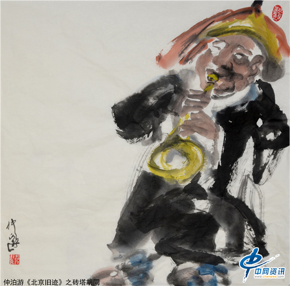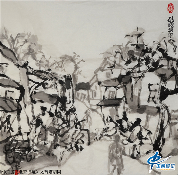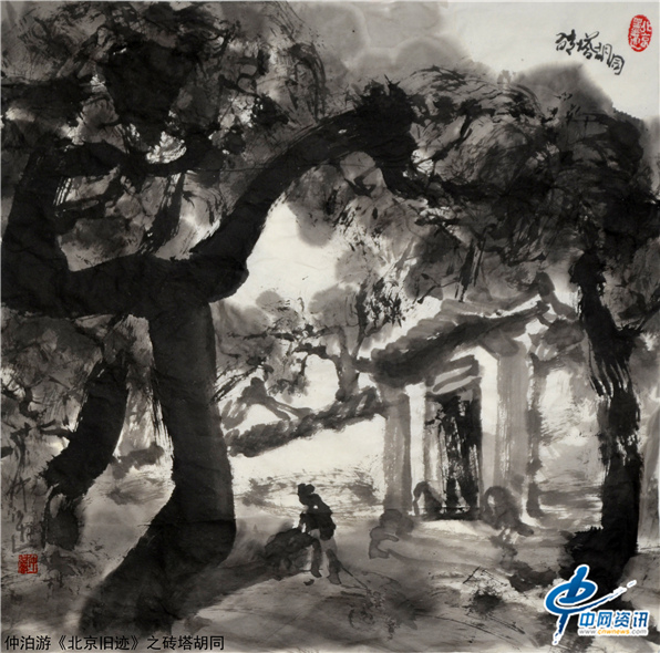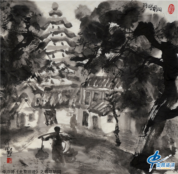 【中网资讯】仲泊游以水墨语言追忆北京旧迹,北京是一座有故事的都城,历史悠久、文化厚重。画家以点滴往事写意晚清民初的过往人物及老北京风景片段,去唤起人们对北京悠悠岁月的回味。
