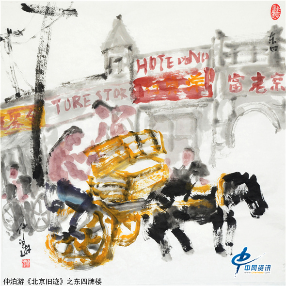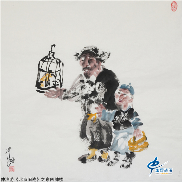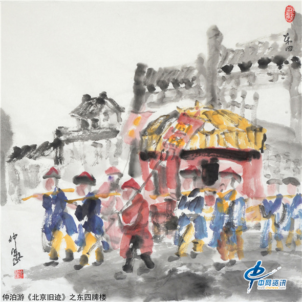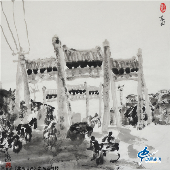 【中网资讯】仲泊游以水墨语言追忆北京旧迹,北京是一座有故事的都城,历史悠久、文化厚重。画家以点滴往事写意晚清民初的过往人物及老北京风景片段,去唤起人们对北京悠悠岁月的回味。