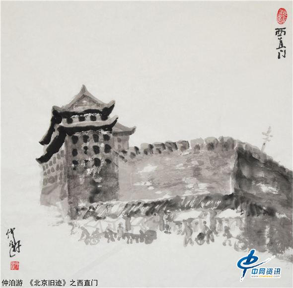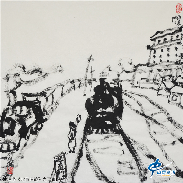 【中网资讯】仲泊游以水墨语言追忆北京旧迹,北京是一座有故事的都城,历史悠久、文化厚重。画家以点滴往事写意晚清民初的过往人物及老北京风景片段,去唤起人们对北京悠悠岁月的回味。