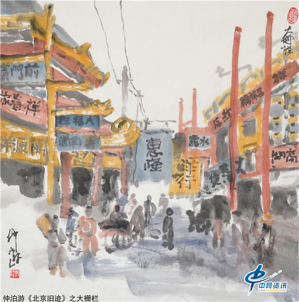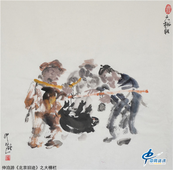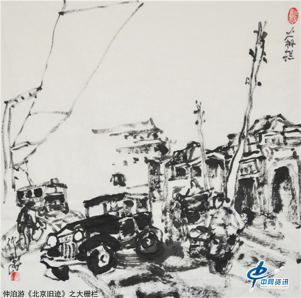 【中网资讯】画家仲泊游以水墨语言追忆北京旧迹,北京是一座有故事的都城,历史悠久、文化厚重。仲泊游以点滴往事写意晚清民初的过往人物及老北京风景片段,通过画作去唤起人们对北京悠悠岁月的回味。