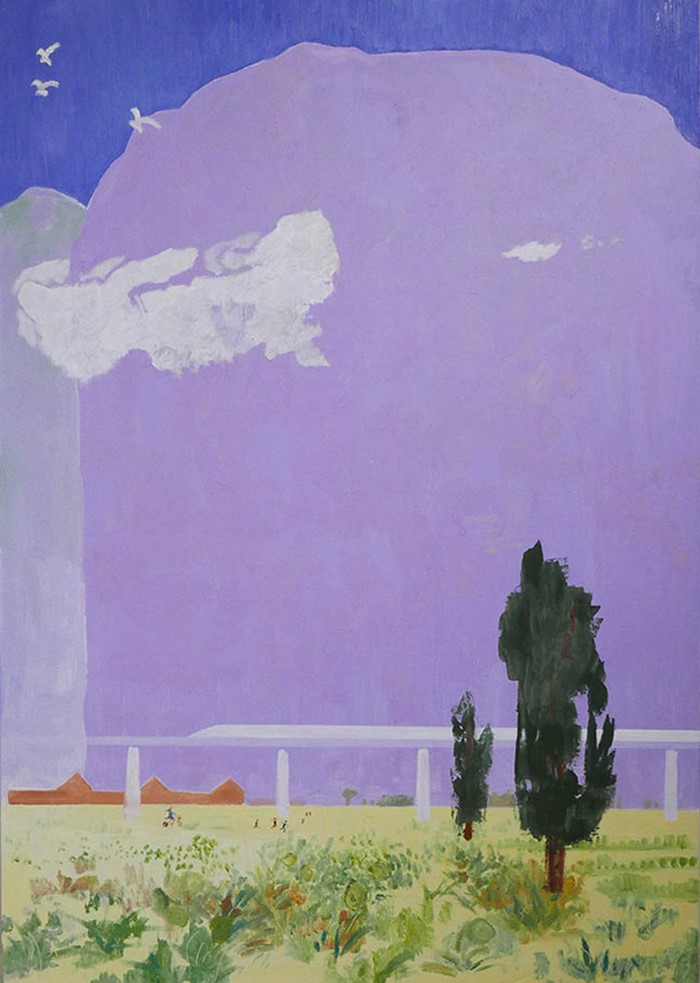 杨静的风景作品,常以大面积的留白方式处理,使得画面更加富有情节感和故事性,为给观众营造出多视角的切实感受。再近一步,光影流动,气息絪缊,亲切熟悉的画面,似曾相识的景象,如同生活中确曾见到过的一般,令观者在艺术家的作品中不断重逢、邂逅着自己。场景中,也不乏对个别景物的特写,给人以孩子般初初的好奇与欣喜,也呈现出了更为真实的世界。面对此情此景,有时又多了一份超然的想象与联想,纯真与顽皮统统是艺术家此时此刻心情的真挚写照。充满童趣的想象和漫画般的动感,在画作中哼起诙谐的小调。
