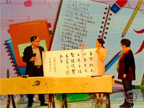 2021年3月15日,国礼书法家张福贵先生与爱心妈妈张连芳做客黑龙江省广播电视台“幸福驿站”栏目组,在节目录制过程中,两人相对而坐,亲切交谈,张福贵先生感动之情,溢于言表。张福贵先生多年来专研书法,多次与全国各地书法家爱好者进行交流,并且致力于社会爱心公益活动,曾和爱心妈妈一起帮助困难孩子,把自己的一份爱心融入到书法当中。最后张福贵先生受邀现场书写北宋张载四问句,“为天地立心,为生民立命,为往圣继绝学,为万世开太平。”送给爱心妈妈,表达自己对张妈妈的敬佩之情。希望人间大爱,得到继承与发扬。