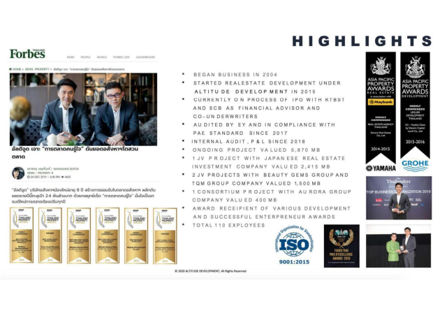 Altitude Development曾在2016年登上了泰国地产开发商财富榜首位的位置,并在2020年将原有的全资建案拆分,并重新整合出颇受用户欢迎的四大爆款建案。