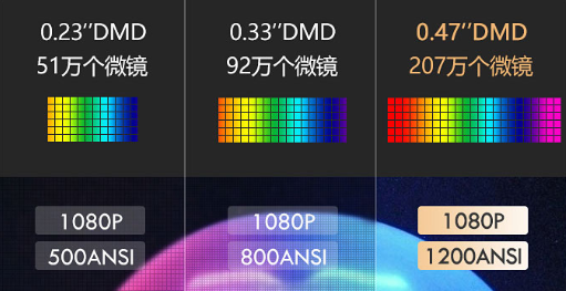 大眼橙NEW X7D/M搭载Amlogic T972处理器芯片,采用0.47DMD显示芯片,分辨率达到真实的1080P,画面非常清晰,亮度为1200ANSI,白天看无惧阳光。