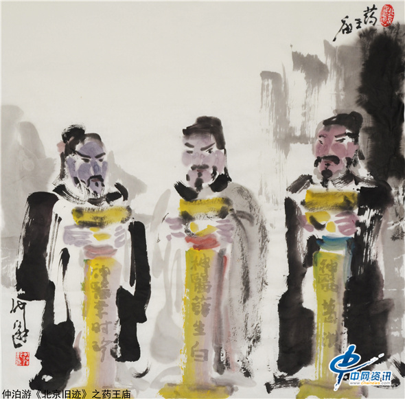 【中网资讯】仲泊游以水墨语言追忆北京旧迹,北京是一座有故事的都城,历史悠久、文化厚重。画家以点滴往事写意晚清民初的过往人物及老北京风景片段,去唤起人们对北京悠悠岁月的回味。