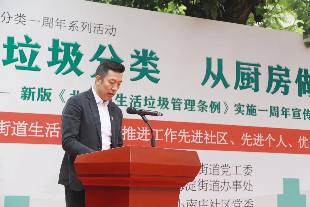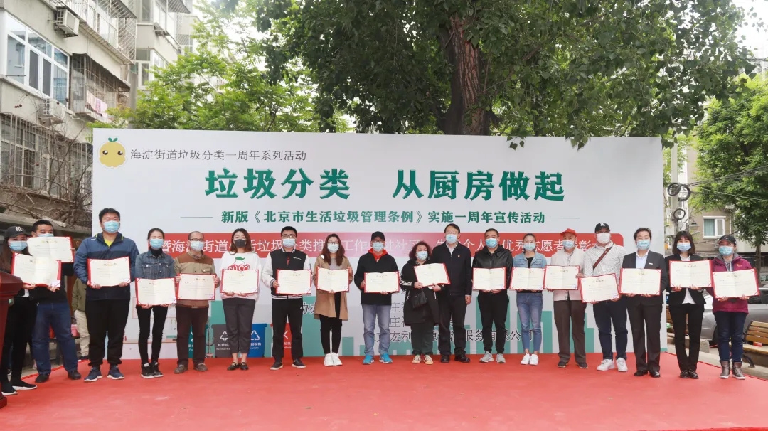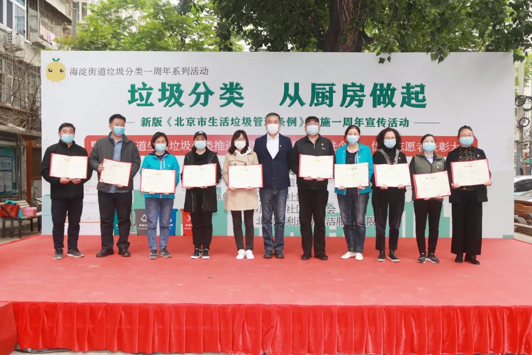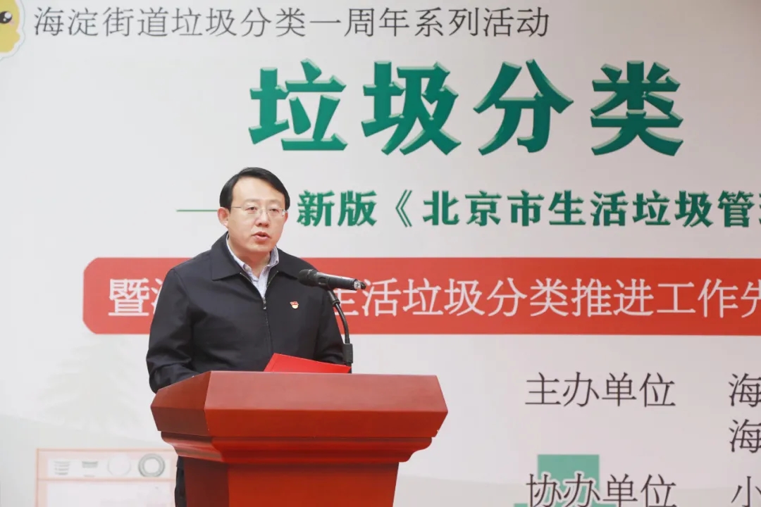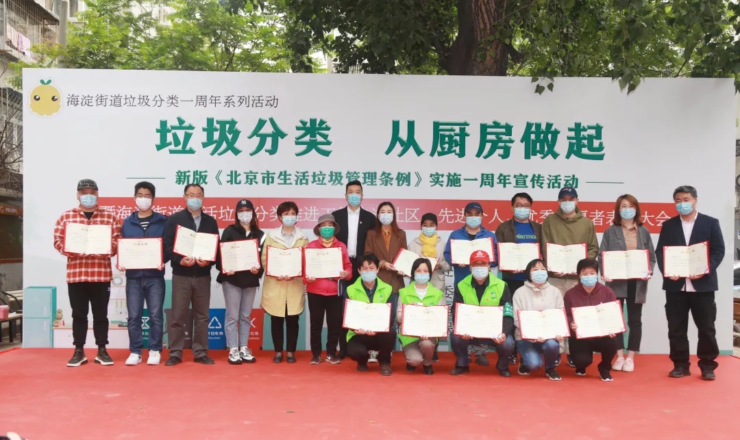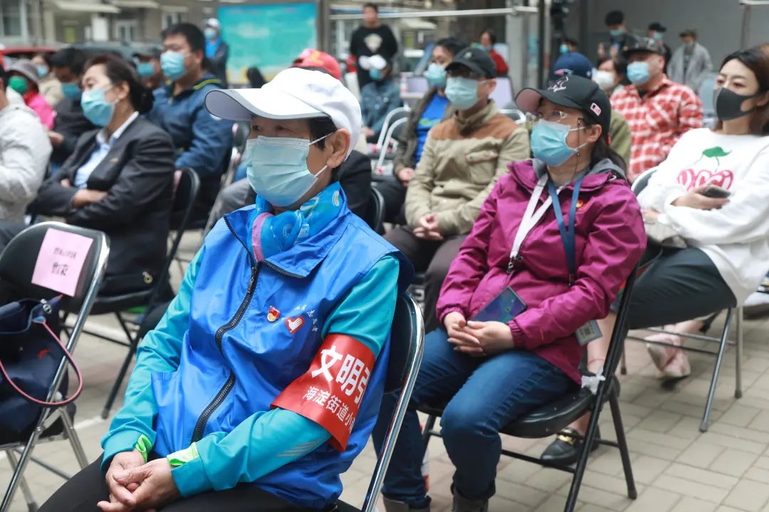 海淀区城市管理委员会主任赵寒、海淀街道党工委书记齐明军、办事处主任李博、副主任林日盛、区城管委固废科、街道城管科、综合行政执法队负责人、32个社区书记、主任、先进个人、优秀志愿者获得者代表参加活动。