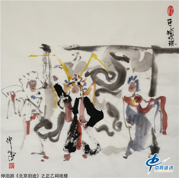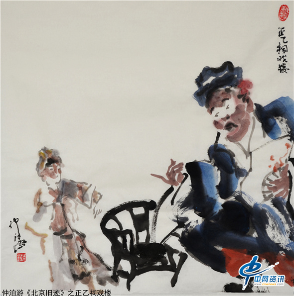 【中网资讯】仲泊游以水墨语言追忆北京旧迹,北京是一座有故事的都城,历史悠久、文化厚重。画家以点滴往事写意晚清民初的过往人物及老北京风景片段,去唤起人们对北京悠悠岁月的回味。