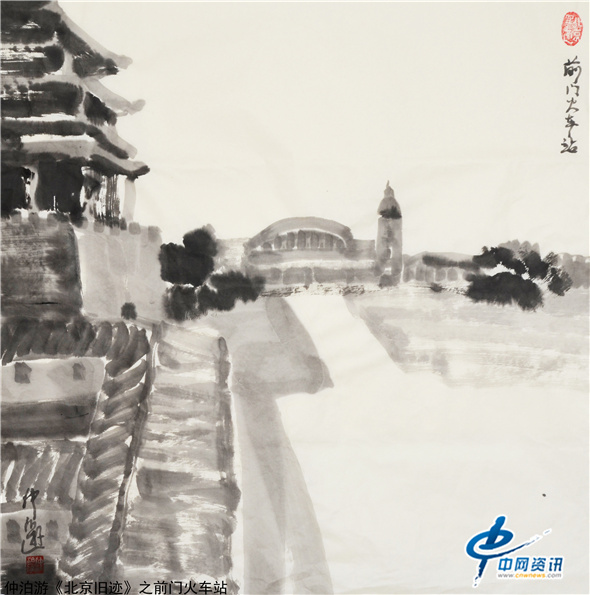 【中网资讯】仲泊游多年来收集、写生、创作了《北京旧迹》百辑水墨画稿,以此回望北京这座都城悠久历史与人文的记忆。