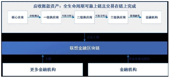 而联想的供应链金融产品依托区块链技术,将企业的相关业务数据自动上链存储,并共享给上下游相关企业,完善了供应链金融信用保险机制。并且,企业融资需求,可与区块链网络生态内的银行、保理公司进行多方对接,一定程度上,提高了企业融资效率,做大了整个供应链金融的“盘子”。