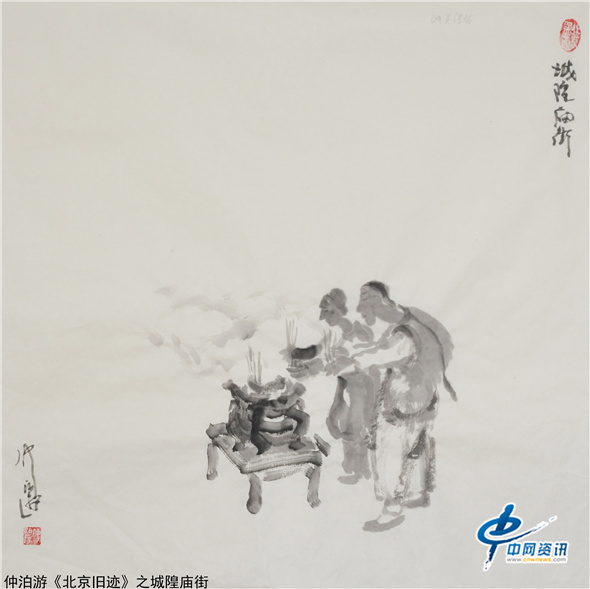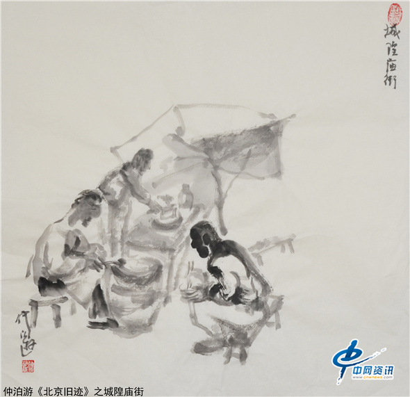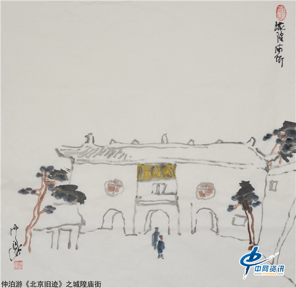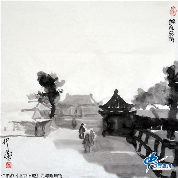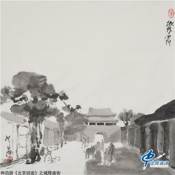 【中网资讯】仲泊游多年来收集、写生、创作了《北京旧迹》百辑水墨画稿,以此回望北京这座都城悠久历史与人文的记忆。
