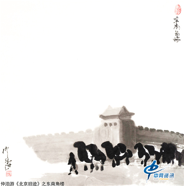 【中网资讯】仲泊游多年来收集、写生、创作了《北京旧迹》百辑水墨画稿,以此回望北京这座都城悠久历史与人文的记忆。
