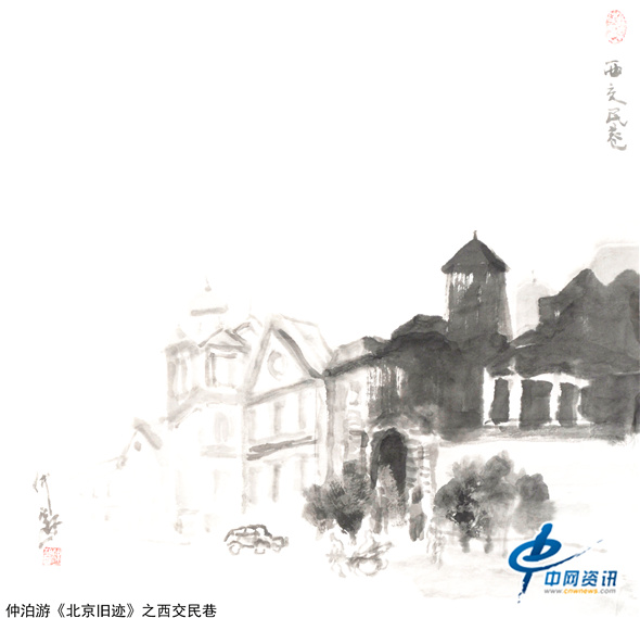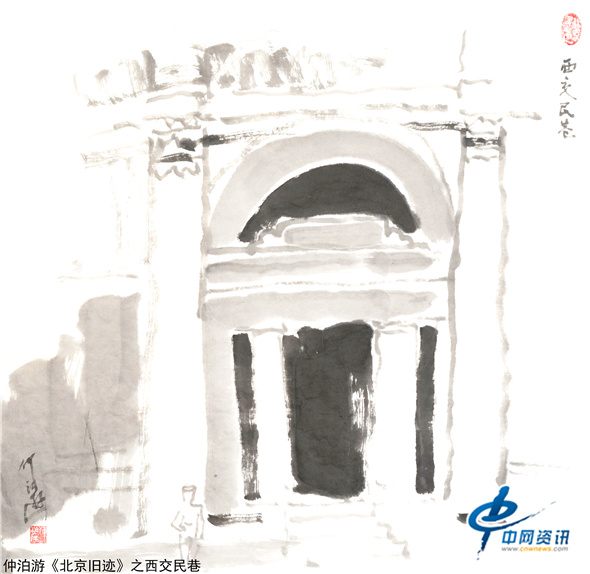 【中网资讯】仲泊游多年来收集、写生、创作了《北京旧迹》百辑水墨画稿,以此回望北京这座都城悠久历史与人文的记忆。