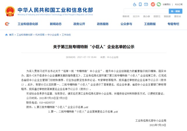 第三批国家级专精特新“小巨人”企业名单公告
