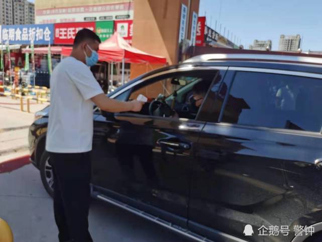 市场管理人员正在给小车司机测体温