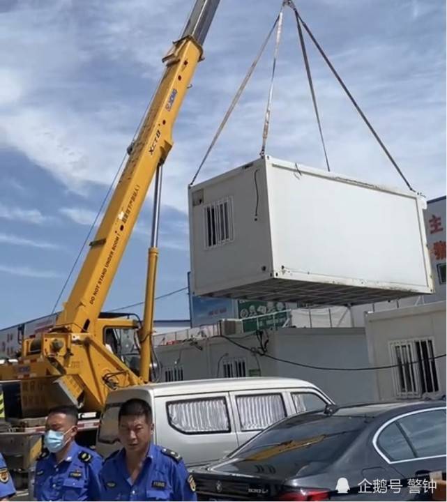高新区行政执法局在拆除集成房