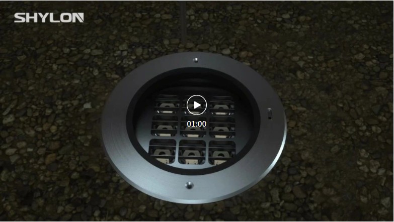 此外,芯龙光电使用SL2169地埋灯对裙楼进行雕琢,从地面到顶部24.4 米,灯光由下而上照射,强化纵向线条;该款地埋灯除了搭载芯龙光电的Superhigh光学架构外,还突破性实现了外部“一键”可调功能,现场可根据实际需求自如调节前后倾斜角度和左右水平方向的安装位置,可更加贴合实现建筑造型的灯光需要。