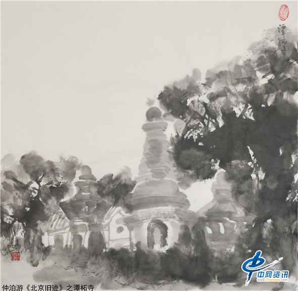 【中网资讯】仲泊游多年来收集、写生、创作了《北京旧迹》百辑水墨画稿,以此回望北京这座都城悠久历史与人文的记忆。