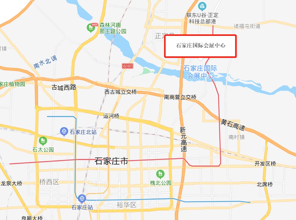 交通指南公交:乘177路至园博园大街南口站下车,步行1.3千米,约19分钟即达石家庄国际会展中心(正定);乘微公交正1路至会展中心南门下车,步行411米,约6分钟即达石家庄国际会展中心(正定);地铁:乘地铁1号线(福泽方向)至会展中心站下车,步行800米至会展中心;导航:石家庄国际会展中心(石家庄正定县河阳路9号)