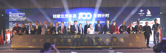 (现场嘉宾共绘“相聚北京冬奥,放飞青春梦想”沙画)