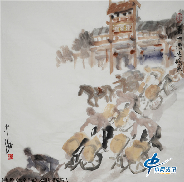 【中网资讯】仲泊游创作水墨寻影《北京旧迹》百辑组画,描绘了晚清民初北京古都的景观,人物及历史文化缩影。古代都城建造了许多帝王宫殿、城楼、园林、庙坛、府邸、民居、胡同、长城。北京以其独特的地理环境使多民族文化得以交流融合,形成了鲜明的京城印迹。