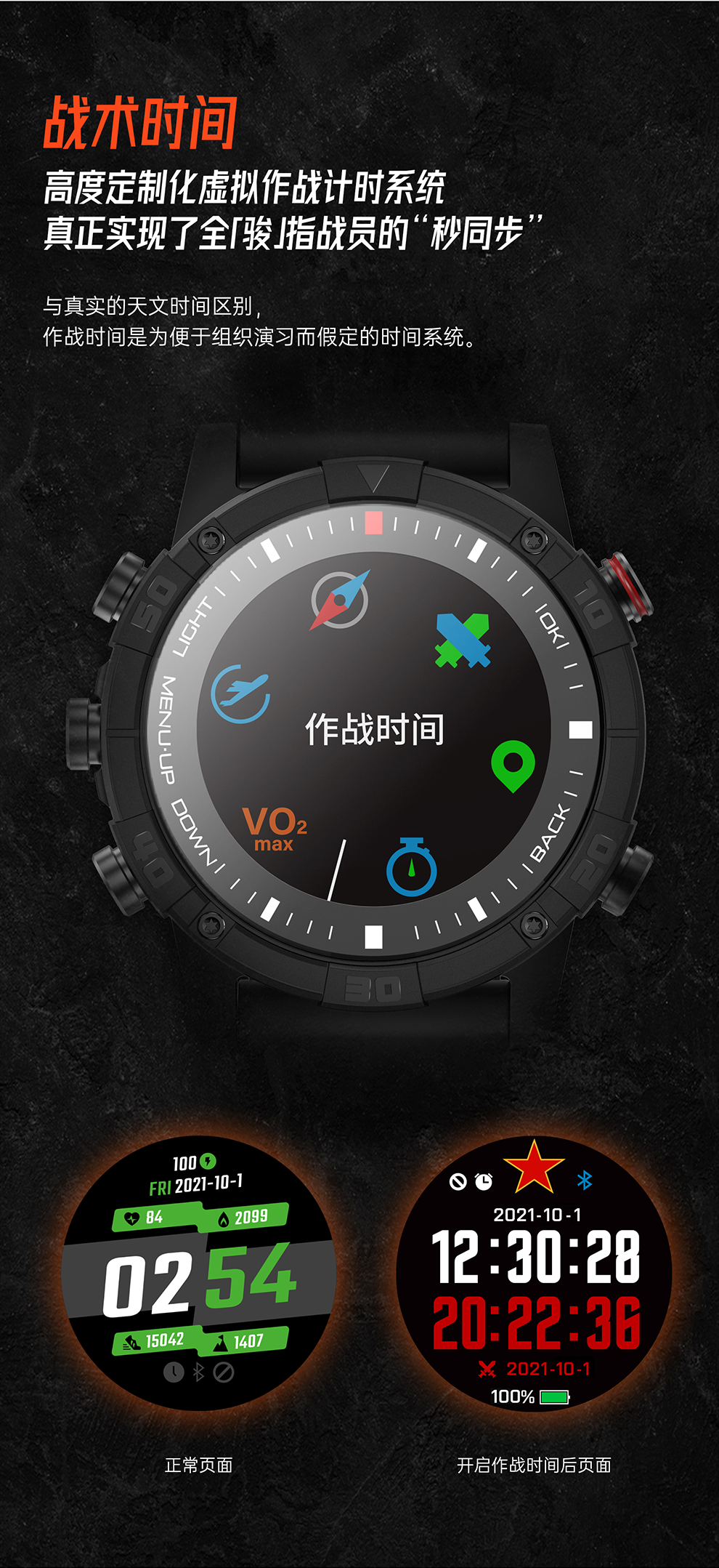 军工品质铸造了硬核的产品参数,其中如骏绝地COSMO6战术版相较于运动版,特别增添了战术时间模式,该模式下可实现整个团队在不同地点“秒同步”,对于军工迷和越野迷来说,新品如骏的虚拟作战时间系统极为带感。