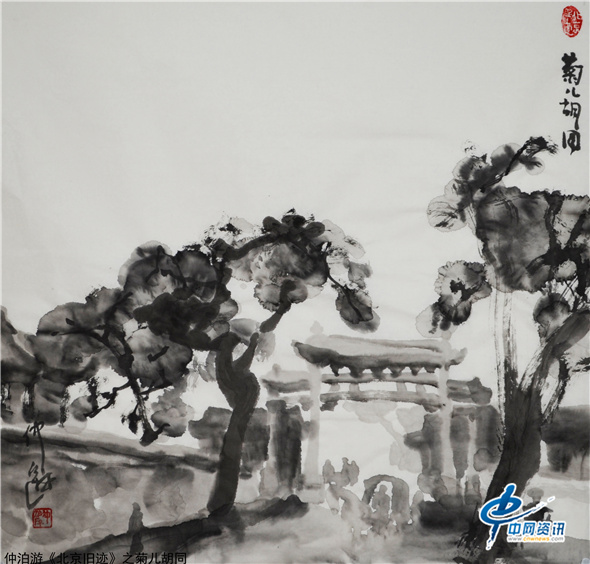 【中网资讯】仲泊游创作水墨寻影《北京旧迹》百辑组画,描绘了晚清民初北京古都的景观,人物及历史文化缩影。古代都城建造了许多帝王宫殿、城楼、园林、庙坛、府邸、民居、胡同、长城。北京以其独特的地理环境使多民族文化得以交流融合,形成了鲜明的京城印迹。