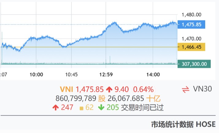 午后,随着卖压的暂时停歇,意味着短线悲观者已经退出市场,多头重新掌控盘面。截至收盘,越南指数上涨9.4点至1475.85点。