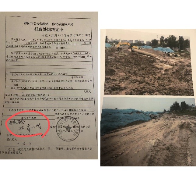 图片说明:2021年9月14日,张某美地块被推平及其被下达的行政处罚决定书