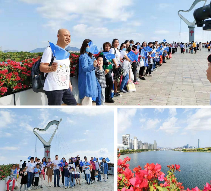 在遵循当地防疫下,经过出示预约码,行程码,绿色健康码后,一生一养咩咩家族伙伴终于正式进入园区,映入眼帘的第一个景点,就是全长300多米造型独特的“蕴珍桥”,桥中央以“竖琴”为设计元素的钢塔,独具风格,桥型蜿蜒曲线,就像海浪起伏一样。此情此景,蓝天白云,景天一色,万物和谐,顿时让人心胸开阔,神清气爽。咩咩家族伙伴纷纷抓住这美丽的风景,或三两好友,或幸福一家,纷纷拍照留影,记录欢声笑语的幸福一刻。