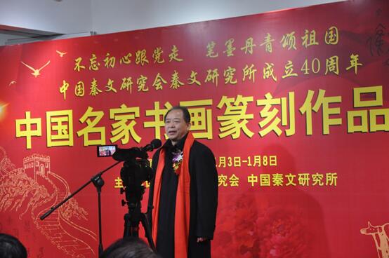 中宣部原秘书长王伟华同志宣布中国秦文研究所成立40周年名家书画篆刻展览开幕并作了重要讲话。必将为弘扬传承中国优秀传统文化作出积极贡献,必将为中华优秀传统文化的创新性发展和创造性转化提供成功的范例,发扬老一辈秦文研究工作者的光荣传统,不忘初心,牢记使命,进一步增进团结,凝聚共识,真抓实干,无私奉献,为祖国的文化事业做出更多、更好的贡献!来自中国书协、画协等方面的领导同志也在开幕式致辞,纷纷祝贺中国秦文研究所成立40周年。