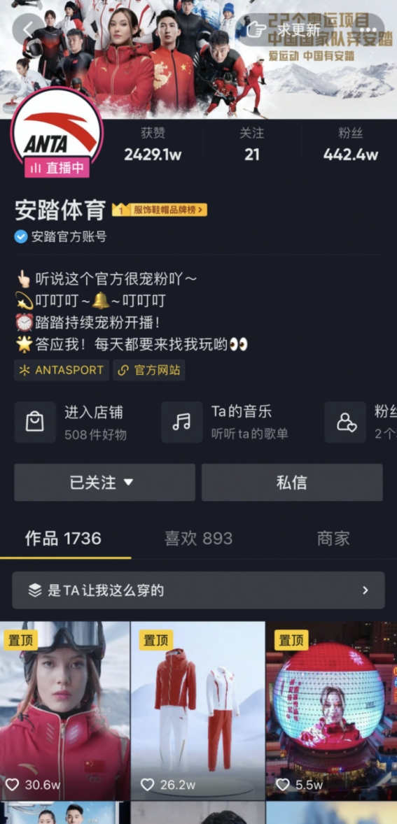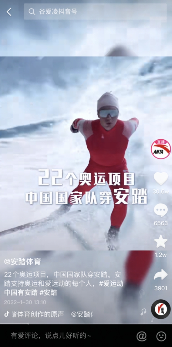 今年冬奥恰逢在春节期间开幕,运动品牌安踏作为北京2022年冬奥会的官方合作伙伴,其服饰的科技性能也成了消费者的关注点。此次活动中,安踏采用与国家队服饰同款面料,如聚热棉、超级羽绒等科技面料所制作的新品服饰,也引发了不少用户的关注。