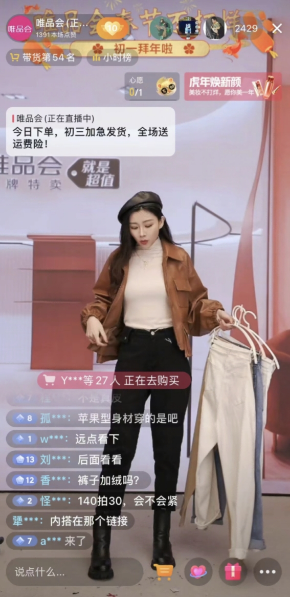 在玩法侧,抖音电商服饰行业开设主题直播赛道,引入安踏、喜歌羊绒、唯品会等多个服饰行业品牌商家参与,打造多类别直播间成功承接抖音春节不打烊活动流量,为消费者提供覆盖新年全场景的服饰货品。