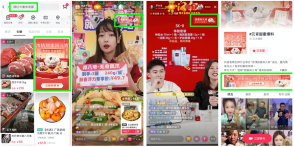 为抓住年后情人节与元宵节两大节庆营销机会,助推后春节时期生意增长,2月9日-2月17日,抖音电商开启了生鲜行业专属活动「浓情蜜意闹元宵」。从商家、品牌、达人等多端开展创新玩法,释放流量、资源与平台补贴等诸多激励,助力生鲜生意参与者吸引节日关注与兴趣人群,迎来春节后新一轮交易爆发。