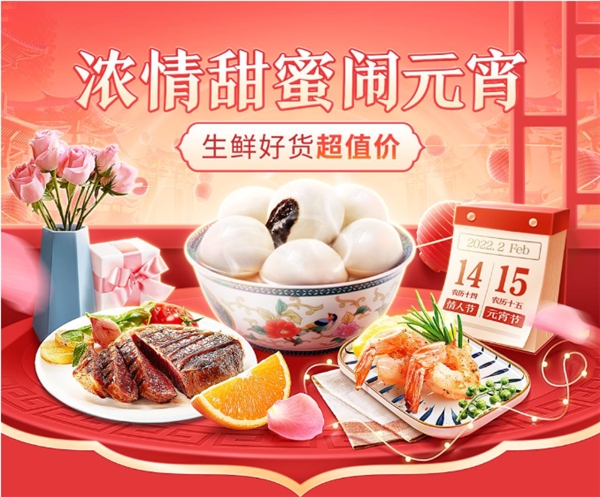 今年情人节的后一天便是元宵节,两大热点节日接踵而至,为生鲜商家达人提供了难得一遇的销售主场。