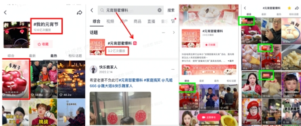为鼓励达人共创热点内容,抖音电商生鲜行业推出了具有充分表达空间的短视频话题#元宵甜蜜爆料,掀起广大达人的创作热情。