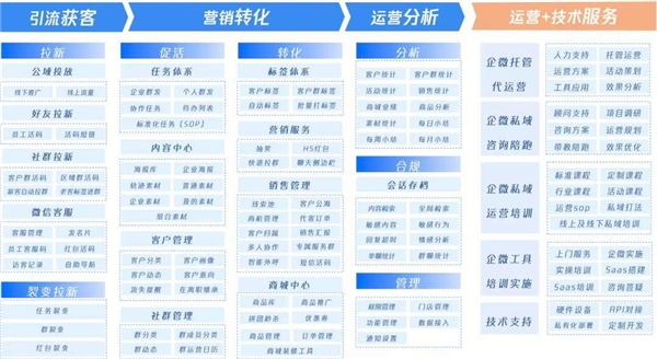 交互是企业和用户建立情感链接的基础过程,企业微信对员工来说可以降低使用门槛,打造一站式工作台,实现高效内外协同、交互;对企业来说连接高质数据资产,赋能一线员工与用户进行交互,形成数据价值闭环,使SCRM有了生存的土壤。微盛基于对腾讯生态的深刻理解和企业微信开放能力,更早地构建了产品基础和服务体系,逐步打造了“引流获客-营销转化-运营管理”的SaaS+交互的产品体系,帮助企业实现以用户为中心的数据驱动型增长。