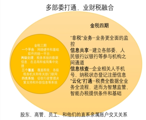 金税工程“多部委打通”意味着对公司股东、高管与员工,以及他们的直系亲属的私人账户建立关联关系。也就是说,其中任何一个账户一旦发现异常,可能就会关联到企业。比如要求供应商多开发票,付款转回私户立即锁定。再比如,找员工的父母兄弟私人账户收款,表面看不到与公司的直接关系,实际上账户可以与公司已经建立关系。一旦发现异常即启动稽核。