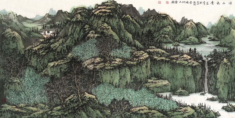 作画是寂寞之道。杨宝录2012年中国艺术研究院研修毕业之后,并没有回到故地去做一位轻松悠闲的地方名画家,而是在位于北京西山一带的凤凰岭美术馆安顿下来,不闻时事,潜心作画。正确的取法加上不懈努力,不几年功夫杨宝录的山水画面貌大变,不能不令人刮目相看。故此笔者坚信,如假以时日,开阔理路,书画通融,杨宝录在中国山水画领域必有所成。