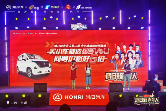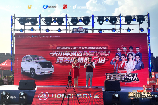 2022年6月18日,鸿日汽车联合山东广播电视台齐鲁频道、山西广播电视台黄河频道、河南广播电视台都市频道、河北广播电视台农民频道共同打造的《鸿日新声夺人第二季》全民嗨唱巡回挑战赛正式开赛,在鲁晋大地率先唱响最强音。本次活动是面向全国音乐爱好者的一场视听盛宴,吸引无数怀揣音乐梦想的人们报名参与,不仅线下活动现场氛围热烈,线上的热度和曝光量也达到百万级别。作为《鸿日新声夺人第二季》官方指定用车——鸿日VeLi核桃版更是备受瞩目,现场成交热情高涨。