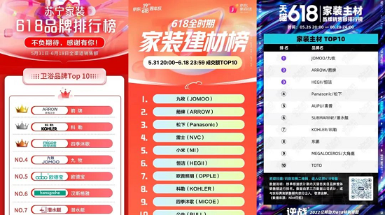 在今年的618大促活动中,箭牌卫浴打造“一箭焕新家”主题,以武侠风布景在天猫、京东多平台开启直播,成功斩获618家装建材卫浴品牌榜苏宁易购平台冠军、京东及天猫平台亚军,热销之势令人瞩目。