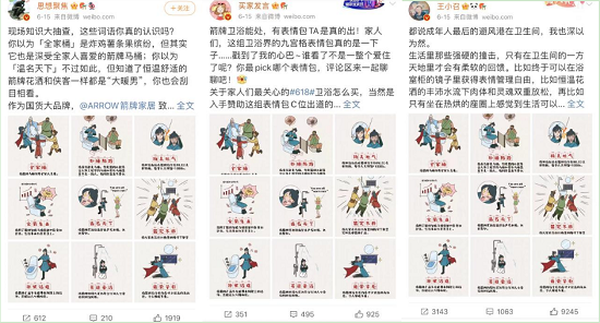 不光借助官方账号的持续物料输出,箭牌卫浴618营销传播活动通过联动公众号、抖音、微博等主流平台KOL强势种草箭牌产品,推动新品销量提升;